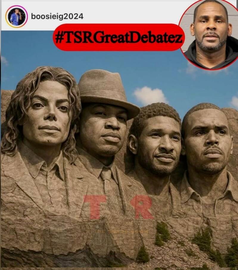 📍Los Angeles, CA — The internet is in a frenzy after a viral post by @boosieig2024 sparked one of the greatest R&B debates of all time. The image—a Mount Rushmore-inspired tribute—features legendary artists Michael Jackson, Ne-Yo, Usher, and Chris Brown. But one name’s absence is setting timelines on fire: R. Kelly.